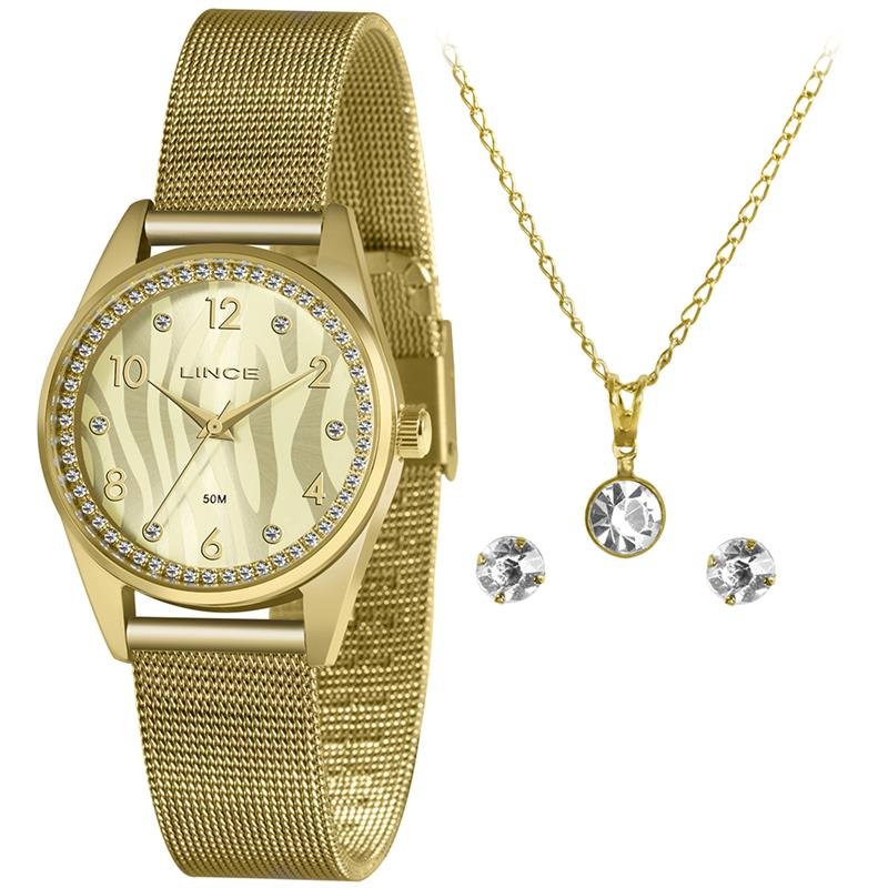 Marca: Lince Visor: Prata, Champanhe, Rosa, Marrom e Preto Vidro: Cristal Mineral Funções: Pressão: 50M Características: com caixa Dourada e pulseira em Aço tipo Mesh Diâmetro da Caixa: 32mm